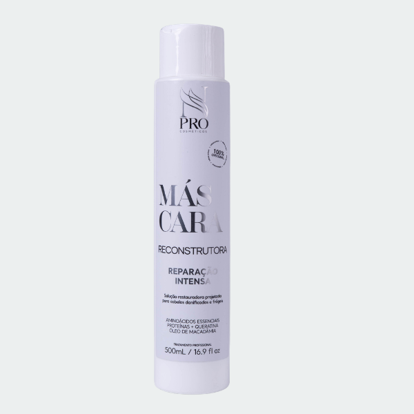 Com o propósito de reconstruir os danos causados por quimicas de descoloração, coloração e alisamentos. a MASCARA RECONSTRUTORA 'Npró Cosméticos' promove reparação intença.